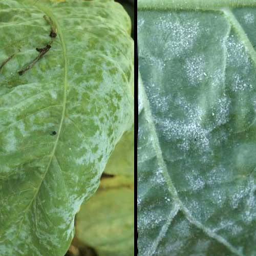 Εμφανίζετε την περίοδο μεταξύ της μεταφύτευσης και συλλογής. Προσβολές παρατηρούνται περίπου 45 ημέρες μετά την μεταφύτευση. Προσβάλλει το φύλλωμα και ευνοείται από υψηλή σχετική υγρασία και υψηλές θερμοκρασίες. Ιδανικές συνθήκες ανάπτυξης της ασθένειας είναι θερμές και ξηρές ημέρες που ακολουθούνται από πολύ δροσερές και υγρές νύχτες. Η ασθένεια ευνοείται από θερμοκρασίες 20 - 25 oC και από σχετική υγρασία 65-75%. Ψυχρά κύματα αέρα με απότομες μεταβολές στη θερμοκρασία και υγρασία αποτελούν ευνοϊκές προϋποθέσεις για την εξάπλωση της ασθένειας. Το πρόβλημα είναι εντονότερο στις ποτιστικές καλλιέργειες και εκεί όπου έχουμε σκίαση και υψηλή εδαφική και ατμοσφαιρική υγρασία. Προσβάλλεται η επιφάνεια των φύλλων και του βλαστού. Το χαρακτηριστικό σύμπτωμα της ασθένειας είναι η εμφάνιση λευκού χνουδιού στα φύλλα και στο βλαστό του καπνόφυτου