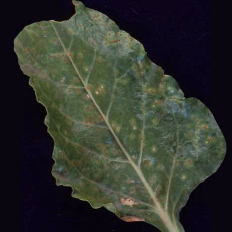 Πορτοκαλί έως σκουρόχρωμες φλύκταινες (φουσκώματα) στην κάτω κυρίως επιφάνεια των φύλλων.