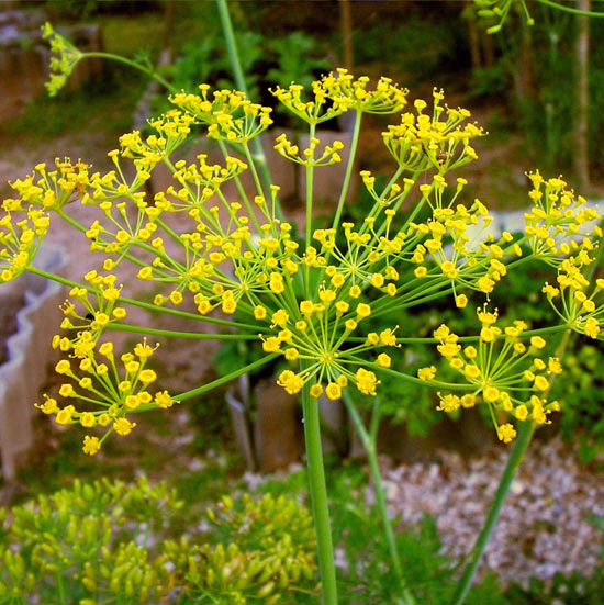 🔹 Η ταξιανθία είναι σκιάδα, με κίτρινα μικρά άνθη, και εμφανίζεται κυρίως το καλοκαίρι.