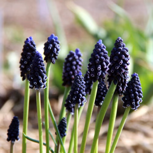 🔹 Άνθη: Μικρά, καμπανοειδή, συνήθως σκούρα μπλε, συγκεντρωμένα σε πυκνή βοτρυώδη ταξιανθία.
