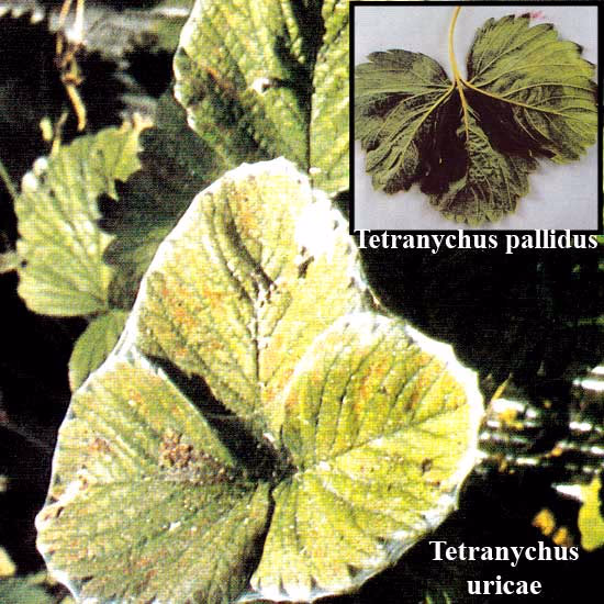Εγκαθίστανται συνήθως στην κάτω επιφάνεια των φύλλων, με τα στιλέτα τους (χηληκέρατα) διατρυπούν τη φυλλική επιδερμίδα και απομυζούν τους φυτικούς χυμούς, με αποτέλεσμα την κακή λειτουργία φωτοσύνθεσης και αναπνοής του φυτού, Τα φύλλα παρουσιάζουν χλωρωτικές κηλίδες και πρόωση γήρανση. Σε προχωρημένες προσβολές τα φύλλα καφετιάζουν, ξεραίνονται και πέφτουν, οι ζημιές αρχικά φαίνονται στις ξηρές περιοχές της καλλιέργειας. Τα φυτά που υποφέρουν από έλλειψη νερού είναι περισσότερο τρωτά στα ακάρεα.
