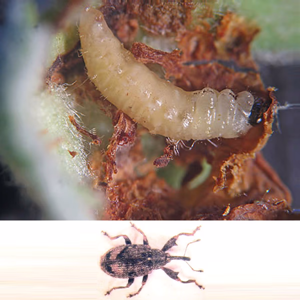 Το έντομο γεννά τα αυγά του μέσα στα κλειστά άνθη της μηλιάς. Οι προνύμφες καταστρέφουν τα αναπαραγωγικά όργανα, με αποτέλεσμα τα άνθη να παραμένουν κλειστά και να ξεραίνονται. Συνιστάται ένας ψεκασμός με κατάλληλο και εγκεκριμένο εντομοκτόνο στο διάστημα μεταξύ πράσινης κορυφής και έναρξης της άνθησης (B─F), μόνο σε οπωρώνες που την προηγούμενη καλλιεργητική περίοδο παρατηρήθηκε σοβαρή προσβολή από το έντομο