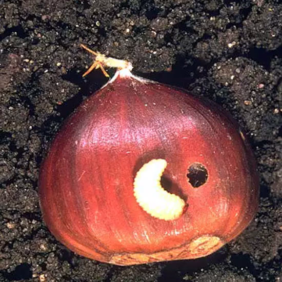 Σε αντίθεση με την καρπόκαψα τα περιττώματα του δεν είναι ενωμένα με μεταξοειδή νημάτια. Τα κάστανα που έχουν προσβληθεί ξεχωρίζουν εξωτερικά από το μικρότερο βάρος τους και ότι ο φλοιός χάνει την στιλπνότητα του.