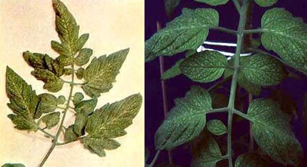 Συμπτώματα: Είναι μια χαρακτηριστική τροφοπενία που εμφανίζεται πρώτα στα νεαρά φύλλα και βλαστούς. Με ανεπάρκια μαγγανίου τα φυτά εμφανίζουν χλωρωτικές ζώνες στούς μεσοπλεύριους τομείς των νεότερων φύλλων, ο ιστός μεταξύ των νεύρων γίνεται κίτρινος και εμφανίζει μια εικόνα που μοιάζει με τον ιστό της αράχνης. Παρόμοια συμπτώματα υπάρχουν και με ανεπάρκεια σιδήρου.