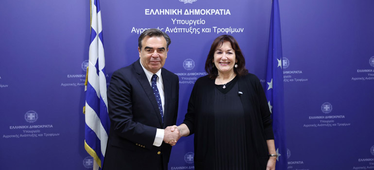 Συναντήθηκε με τον Υπουργό Αγροτικής Ανάπτυξης και Τροφίμων, Μαργαρίτη Σχοινά και είχαν εκτενή συζήτηση για ζητήματα κοινού ενδιαφέροντος που βρίσκονται στην κορυφή της ευρωπαϊκής ατζέντας.